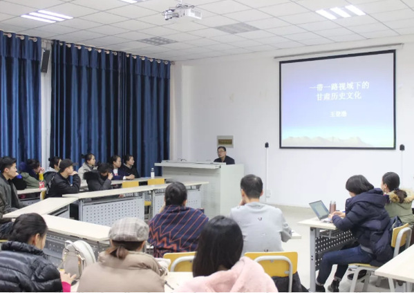 12月6日15:00-17:00,我院2018年“研究生学术月”专家教授论坛第三场如期举行。甘肃省文联副主席王登渤为我院全体教师、研究生做了题为“一带一路视阈下的甘肃历史文化”讲座。