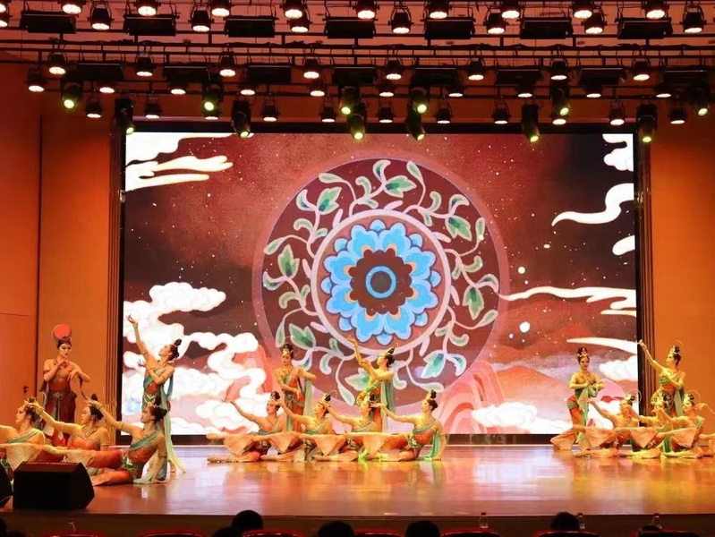 像从壁画上出来的《初唐57窟-最美菩萨印象》深深撼动了观众。“敦煌艺术”是中国西部文化艺术的一朵绚丽奇葩,它承载着西北地区所具有的独特风貌,是西部民族的宗教信仰和民俗民风的艺术载体。“敦煌舞”的创立使“敦煌艺术”走出莫高窟。当今在“一带一路”倡议视野下,它显得尤为重要,更加辉煌。