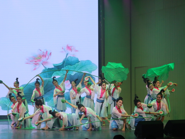 《莲鼓越歌行》源于浙江地域特色“水乡鼓”,围绕着采莲女的生活风情和人物形象,塑造了一幅古代越地女子载歌载舞的动态画卷。