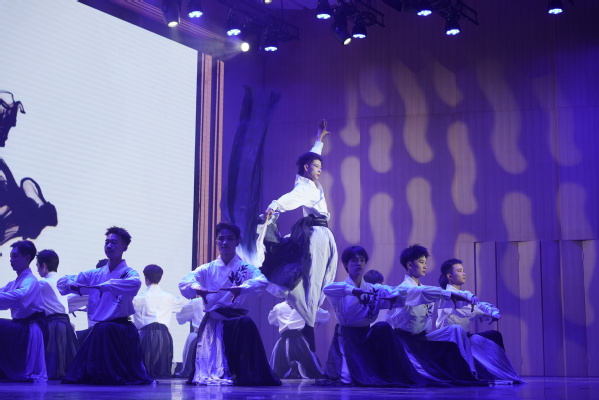长扇为笔,墨下生花。舞蹈作品《国风墨韵》通过男子群舞阳刚苍劲的表现方式,将舞蹈艺术与博大精深的中华传统文化相结合,让大家从《国风墨韵》中理解了坚韧,也从坚韧中学会了《国风墨韵》。