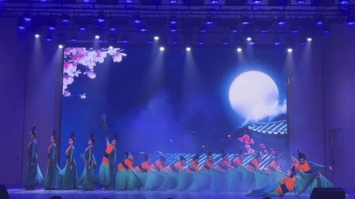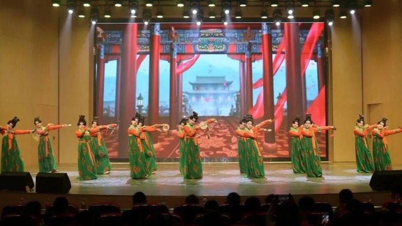 鬓云欲度香腮雪,衣香袂影是盛唐。”群舞《唐宫夜宴》展现出大唐的盛世风韵。该舞蹈作品以创新的手法抹去时间遗留的灰尘,展现出具有历史风韵和魅力的大唐文化。