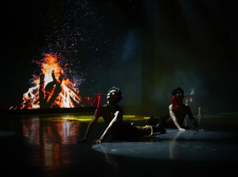 群舞《遥远的路》讲述的是一群部落勇士,在举部迁移的路途中不畏艰险,为部落探路而付出生命的故事。年轻的勇士正如改革开放四十年的建设过程中,我党无数前赴后继、不惜牺牲自我的探索者,他们不忘初心、牢记使命,砥砺前行。