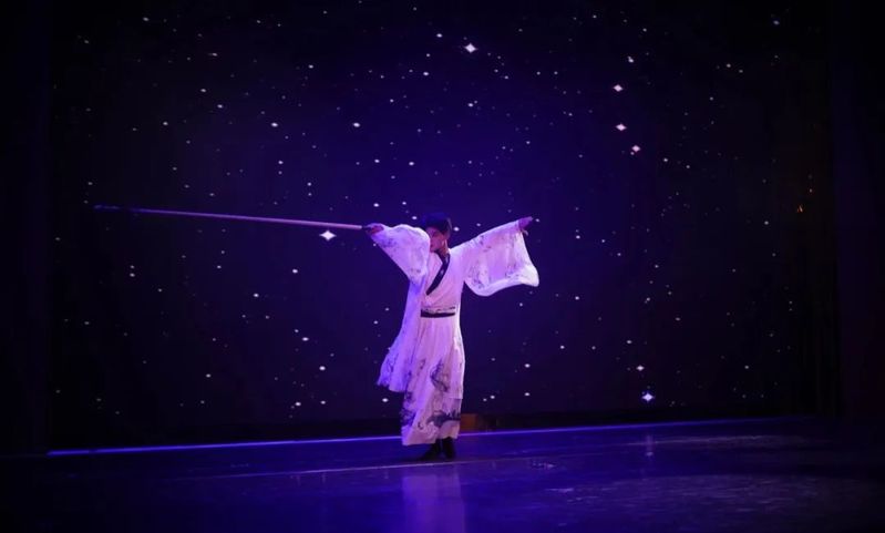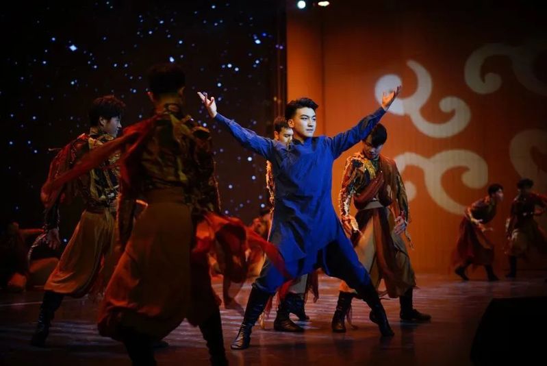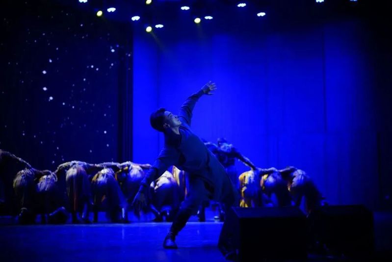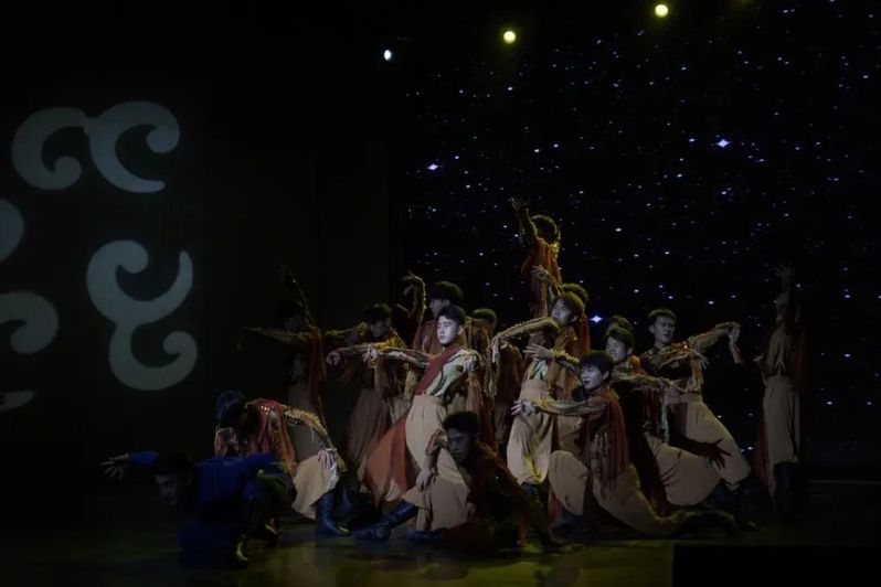 在梦中生机盎然的草原和奔腾的马群使青年重新找回了童年的梦想,男子群舞《雁飞 忆·梦·归》表现对传统⽂化之洞⻅、对思乡精神之追求,珍惜当下之呼吁,塑造了⼀个蒙古族游子的形象,体现对文化自信的坚定。