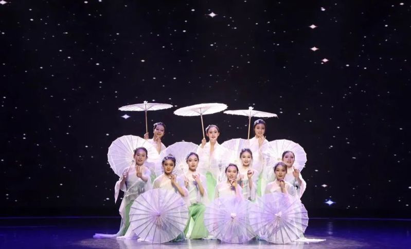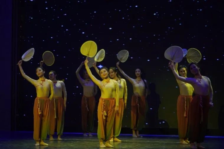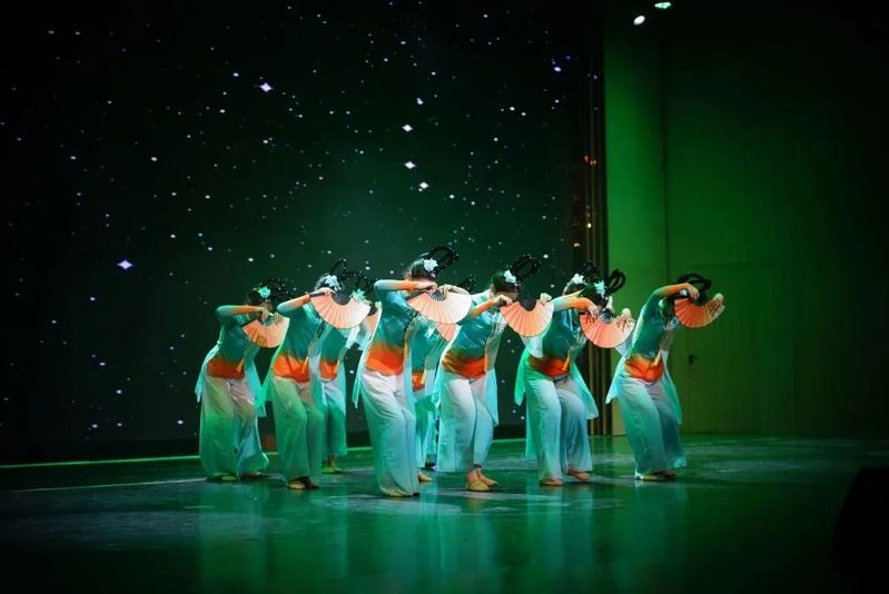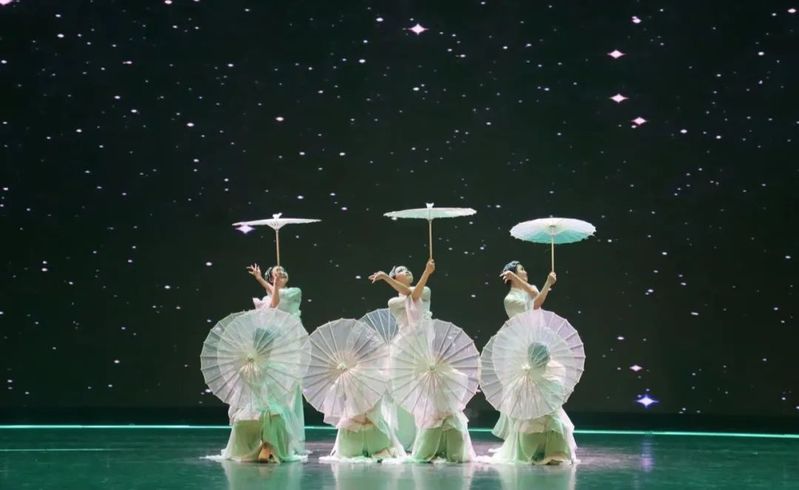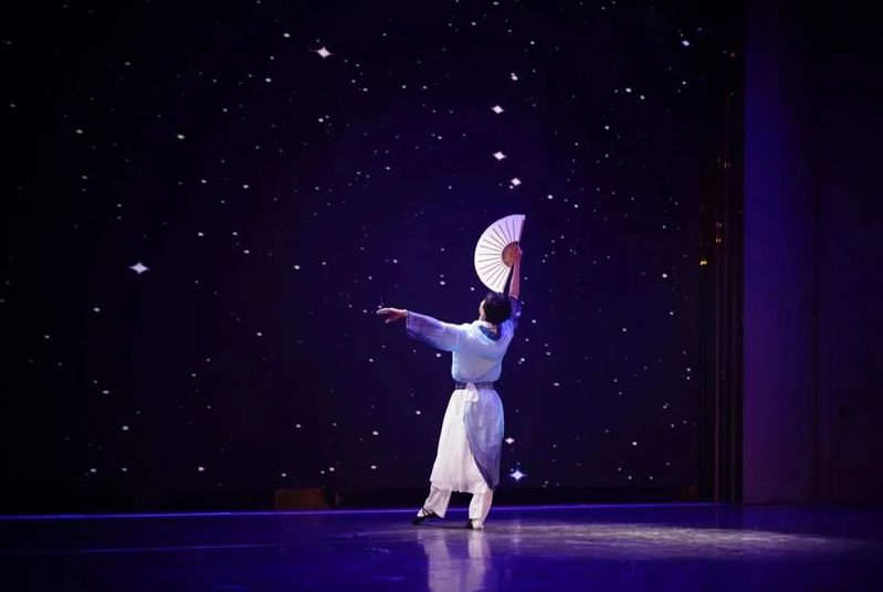 女子群舞《醉春风》尝试将折扇技法与中国古典舞的身韵语汇相结合,追寻中国传统的艺术思维和审美情趣。