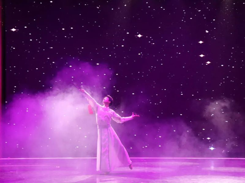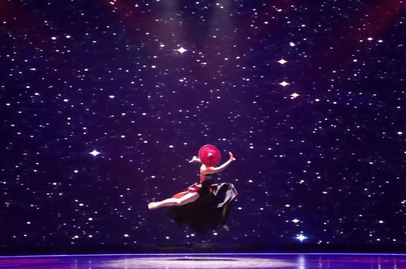 长河落日圆下归荑萋萋,飘然星星之火,即成燎原之势。女子群舞《星星之火》营造了一场精妙绝伦的视觉盛宴,热烈赞颂了革命先辈们的伟大红色精神。