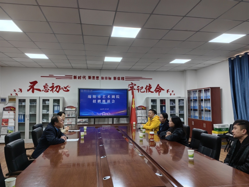 招聘会前,学院领导与绵阳市艺术剧院王馨团长一行进行了交流座谈。剧院招聘负责人就剧院概况、发展前景、薪酬待遇等内容作了宣传与介绍,学院党委书记吴永伟代表学院欢迎绵阳市艺术剧院来院招聘,希望双方通过校企合作交流,共同搭建就业服务平台,让更多的毕业生实现优质高效就业。