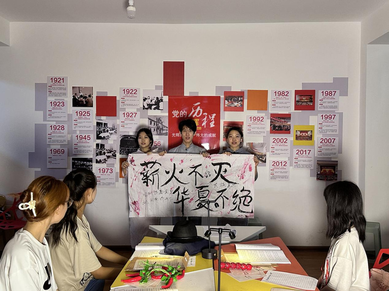 主题党日活动选取剧本《觉醒》以“五四运动”为背景,使参与者深入了解侵华战争前期国家的艰难处境以及爱国青年在民族危亡时刻做出的英勇抉择,弘扬和传承先辈们的爱国精神和牺牲精神。随着活动的进行,同学们仿佛穿越回了那个激情燃烧的革命岁月。在推理与互动环节,大家紧密合作,共同分析线索,探讨剧情的发展,每一个决策似乎都关系着革命的前途,每一次交流都充满了紧张与激情,参与者们全身心投入,仿佛真的置身于那个动荡的年代。