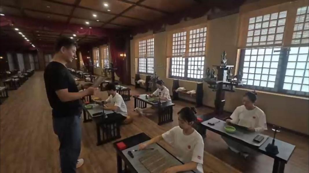 在研学教室内,实践团成员们了解到,简牍是我国古代在纸张普及前用以记录文字的主要载体,由竹简和木牍构成,诞生于战国时期,直至魏晋才被纸张全面取代,沿用时长超千年。简牍的内容如星河般包罗万象,是叩问古代社会的一扇窗。实践团成员们还了解到悬泉置遗址简牍中关于击鼓记载主要见于《鼓令册》,当时主要用于接待宾客。根据来访者身份不同,击鼓次数、接待规格和用品均有差异,有25下、15下、8下等。