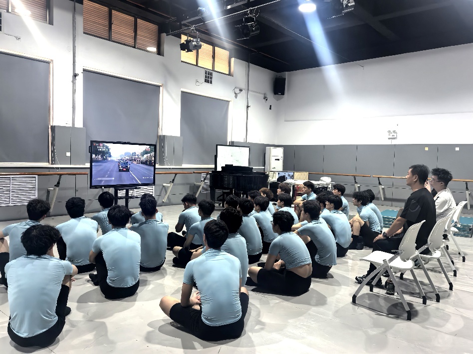 当天,学院师生们早早来到集中收看地点,怀着崇敬的心情等待直播开始。9 点整,当大会正式开始,礼炮鸣响、国旗升起的那一刻,全体师生自发齐唱国歌,浓浓的爱国情怀在现场激荡。