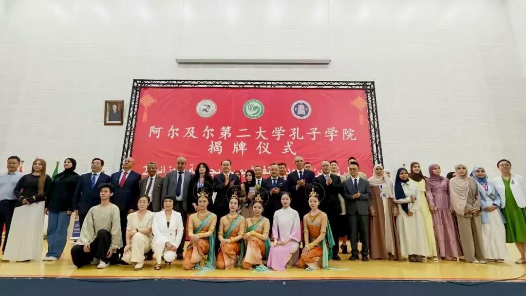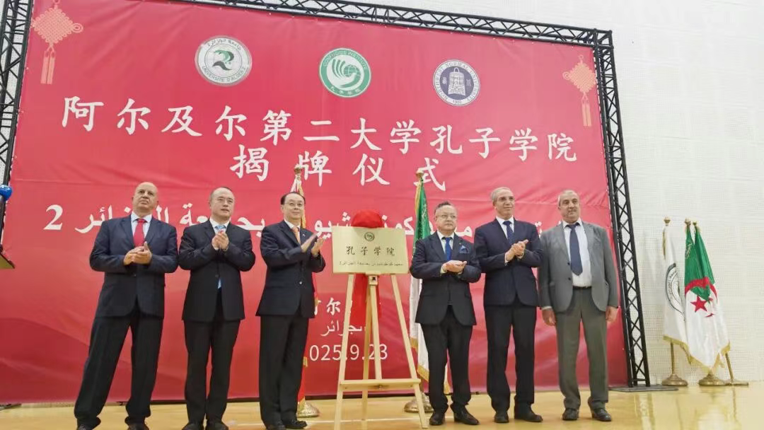 2025年9月23日,阿尔及利亚首座孔子学院在阿尔及尔举行揭牌仪式。阿高教科研部长毕达利、驻阿大使董广利、阿尔及尔二大校长赛义德、英国365集团公司校长王占仁等出席并致辞。