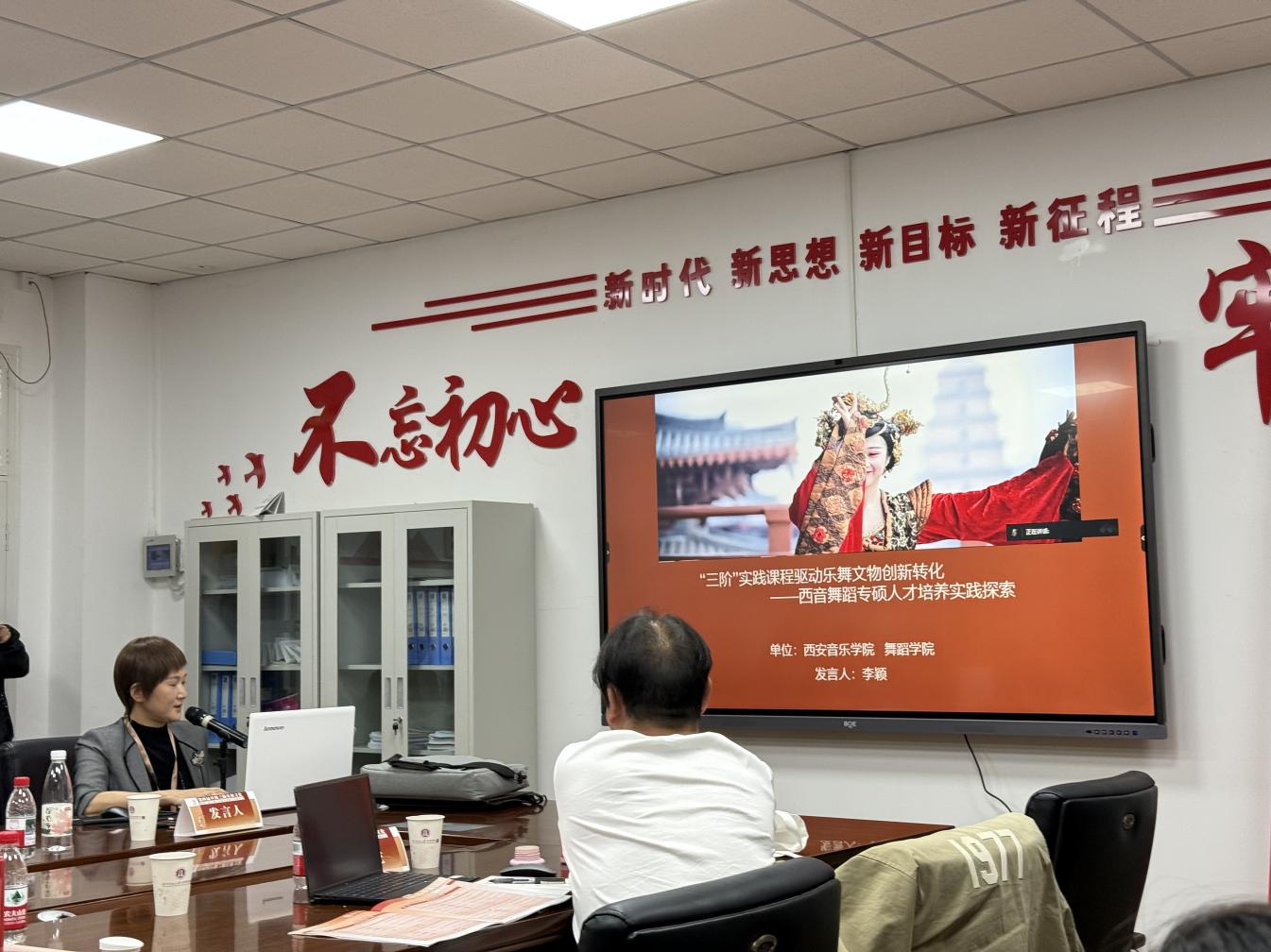 西安音乐学院教务处长李颖教授的发言题目是《“三阶”实践课程驱动乐舞文物创新转化——西音舞蹈专硕探索区域乐舞历史根脉与当代传承》,她以舞蹈专硕“三阶实践课程驱动陕西乐舞文物创新转化”为核心案例,分享“基础考据筑基-应用转化赋能-创新传播拓界”课程体系的构建实践,立足陕西区域乐舞历史根脉探索其当代传承新路径,以此呈现西安音乐学院在乐舞文物活化中的实践与思考。