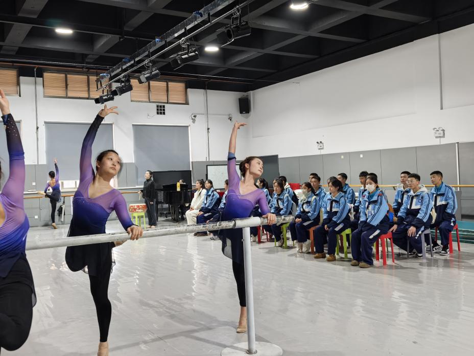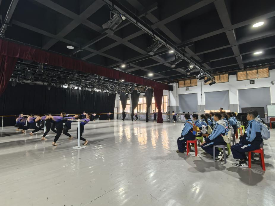 在学院师生的热情接待与细致安排下,同学们走进中国古典舞基训课堂。课堂上,我院学子扎实的专业功底、舒展的肢体表现与专注的训练态度,深深触动了在场的每一位同学。大家或认真记录动作要领,或紧盯舞者的姿态细节,不时为精彩的示范与细致的讲解轻声赞叹。